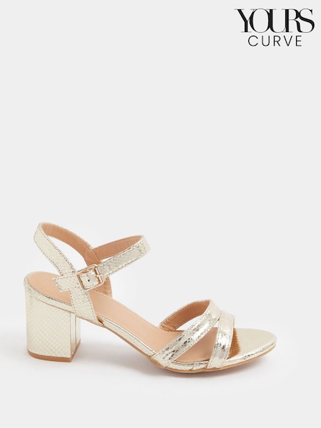 Yours Curve Gold Wide Fit EEE Extra-Wide Fit Patent Mid Block Heel Sandals