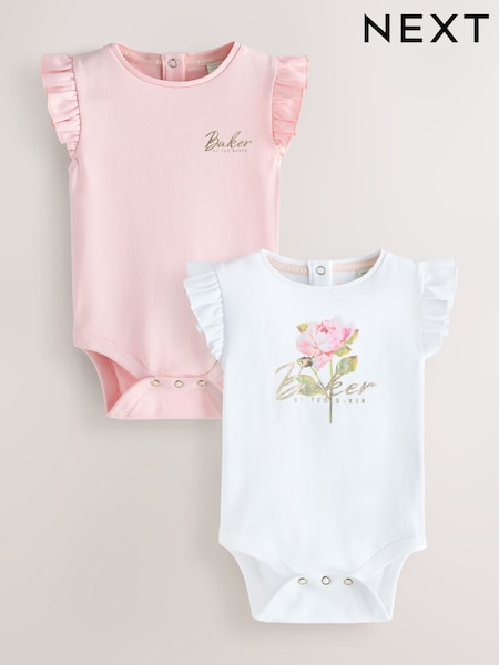 Baker by Ted Baker 2 Pack White/Pink Frill Bodysuits