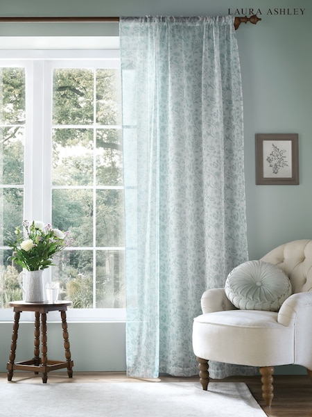 Laura Ashley Duckegg Blue Shepherds Purse Voile Slot Top Sheer Panel Curtains