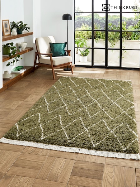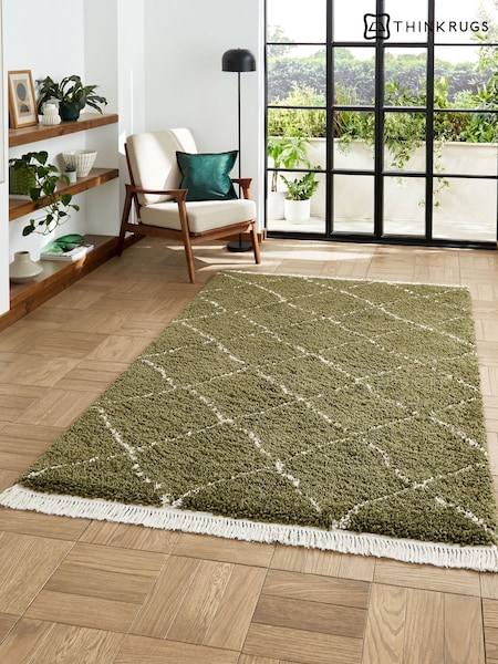 Think Rugs Dark Green Lux Shaggy Plain Rug