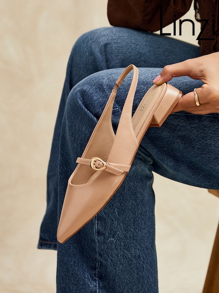 Linzi Nude Align Pointed Toe Ballet Flats With Buckle Detail