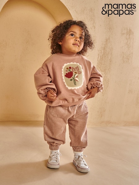 Mamas & Papas Pink Cord Trousers with Elasticated Cuffs