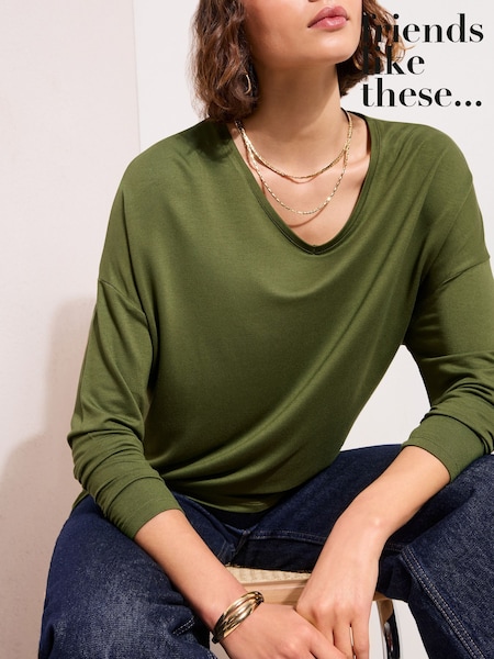 Friends Like These Navy Soft Jersey V-Neck Long Sleeve Tunic Top