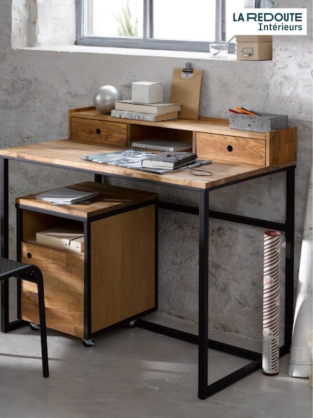 La Redoute Intérieurs Oak Black Hiba Industrial Desk Unit on Wheels