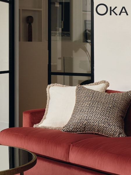 Oka Off White Stonewashed Linen Cushion Cover with Fringing