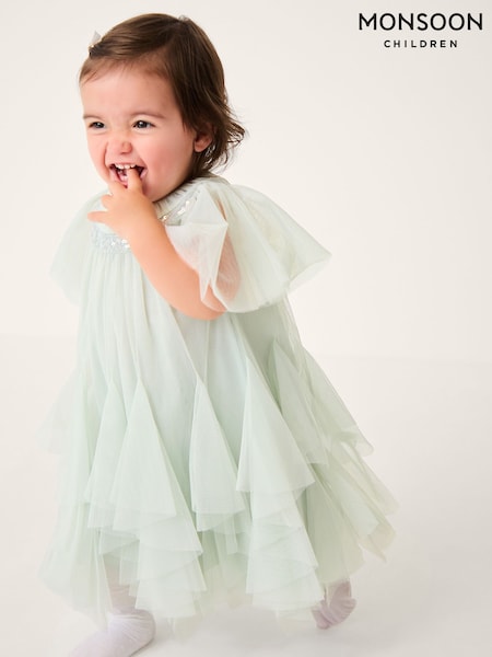 Monsoon Green Baby Floral Embroidered Tulle Dress