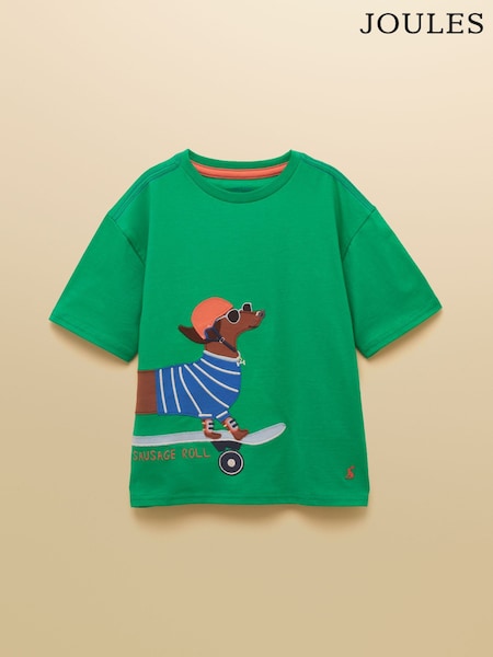 Joules Boys' Archie Green Dog Applique Graphic T-Shirt