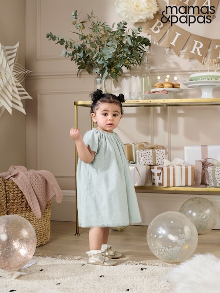 Mamas & Papas Green Floral Embroidered Detail Mesh Dress