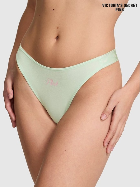 Victoria's Secret PINK Mint Green Thong Cotton Logo Knickers