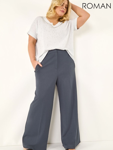 Roman Grey Curve Tailored Wide Leg Stretch Trousers