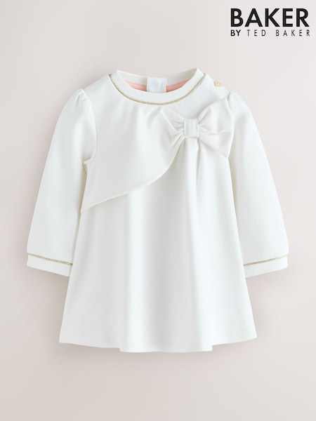 Baker by Ted Baker White Rose Print Frill Peplum Hem Dress