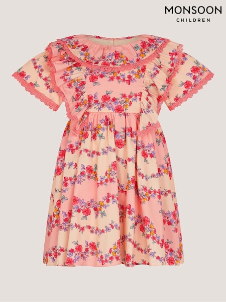 Monsoon Pink Baby Floral Lace Trim Frill Dress