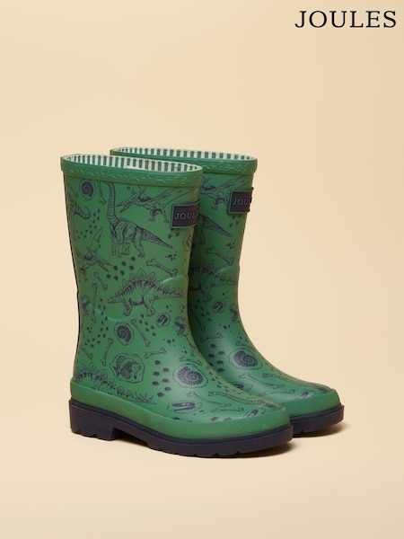 Joules Kids' Green Dino Welly Print