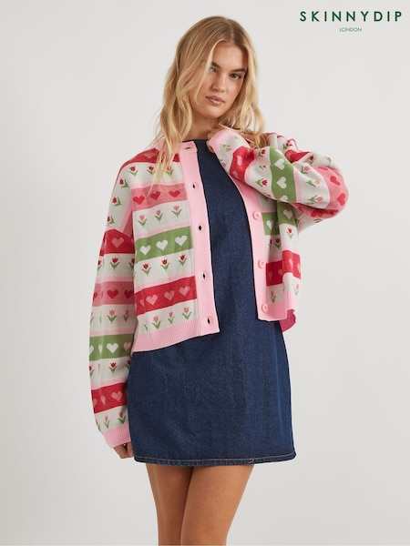 Skinnydip Pink Floral Stripe Knitted Cardigan