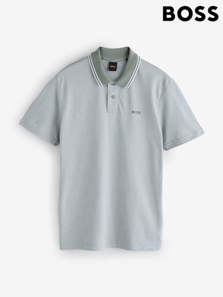 BOSS Grey Tipped Collar Regular-Fit Logo Photo Shirt