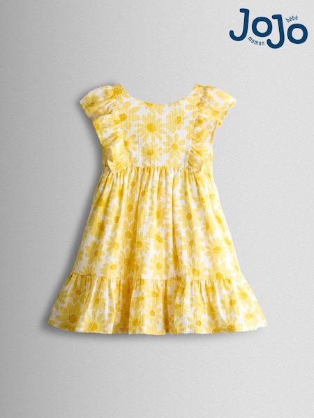 JoJo Maman Bébé Yellow Daisy V back Frill Dress