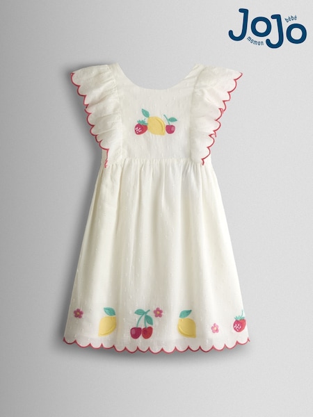 JoJo Maman Bébé Pink Cherry Embroidered Collared Button Through Dress