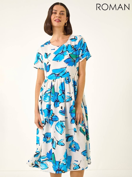 Roman White Floral Trim Smock Dress
