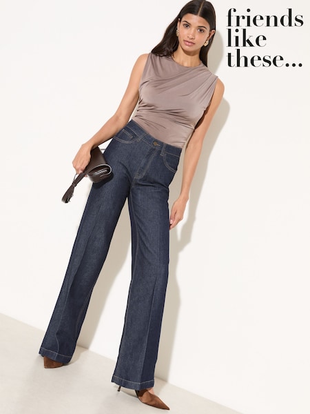Reiss Dark Blue Edie Petite Flared-Leg Denim-Look Trousers