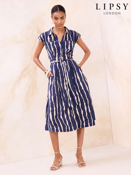 Lipsy Navy Petite Linen Midi Shirt Dress