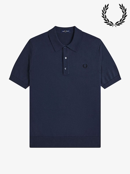 Fred Perry Blue Cotton Knitted Polo Shirt