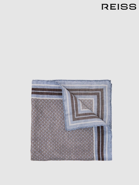 Reiss Soft Blue Curzio Silk Micro-Print Pocket Square