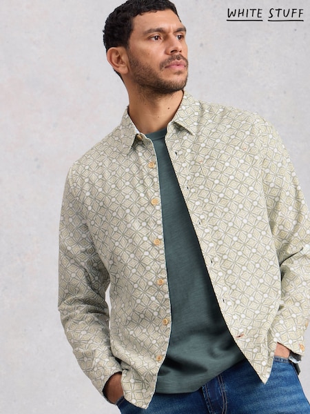White Stuff Green Finsbury Tile Print Shirt