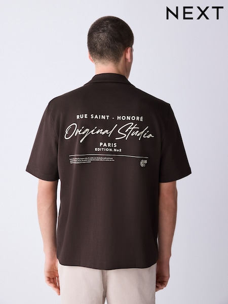 Brown Printed Jersey Short Sleeve Shirt