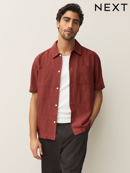 Rust Brown Linen Tencel Blend Short Sleeve Shirt