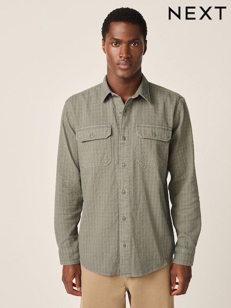 Green Regular Fit Textured Twin Pocket Long Sleeve Shirt