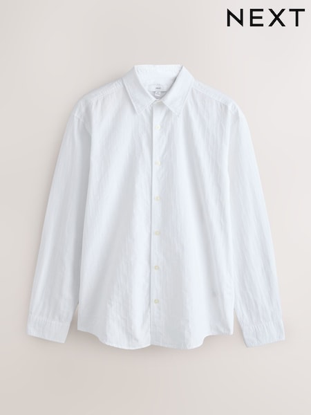 White Jaquard Print Long Sleeve Shirt