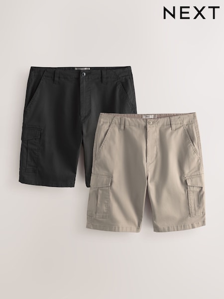 Black/Mushroom 2 Pack Stretch Cargo Shorts