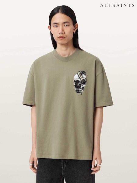 AllSaints White Snakehead Short Sleeve Crew Neck T-Shirt