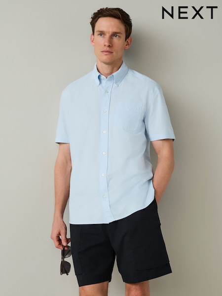 Blue Light Weight Pocket Oxford Short Sleeve Shirt