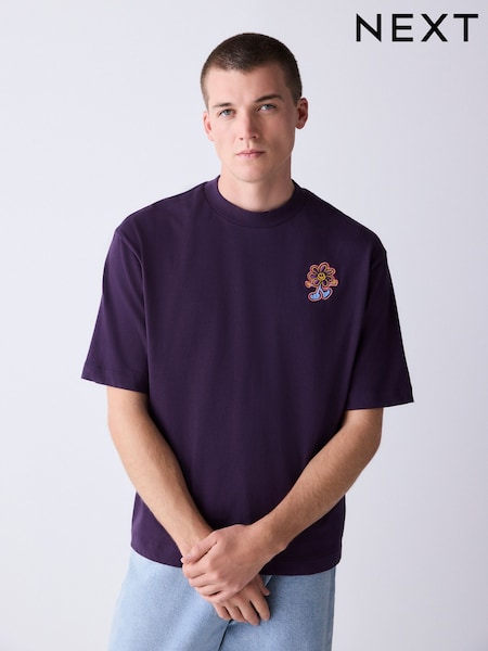 Purple Washed Relaxed Fit Graphic Print Heavy Weight T-Shirt