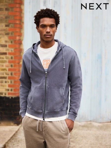 Grey Zip Through Garment Wash Wide Fit Cotton Rich Heavyweight Joggers