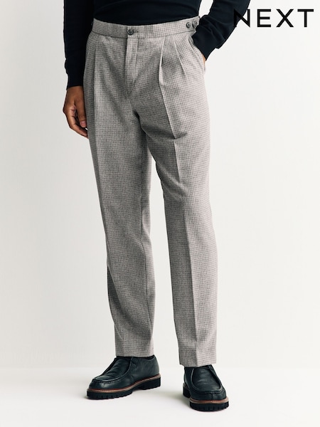 Light Grey Signature Smart Check Trousers With Wool