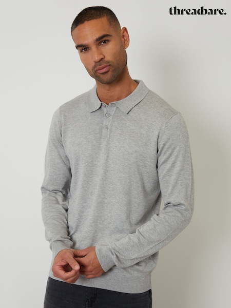 Threadbare Grey Knitted Long Sleeve Polo Jumper