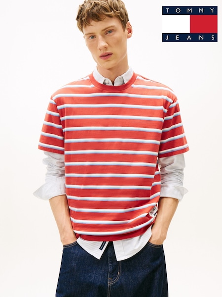 Tommy Jeans Red Jersey Relaxed Crew Neck T-Shirt