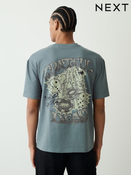 Green Grateful Dead Relaxed Fit Band Graphic Print T-Shirt