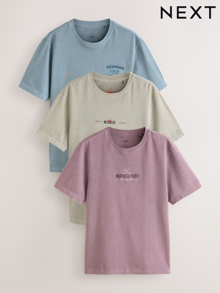 Green/Blue/Pink Regular Fit Graphic Print T-Shirts 3 Pack
