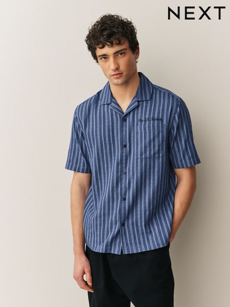Navy Dobby Stripe Short Sleeve Shirt