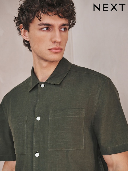 Green Linen Tencel Blend Short Sleeve Shirt