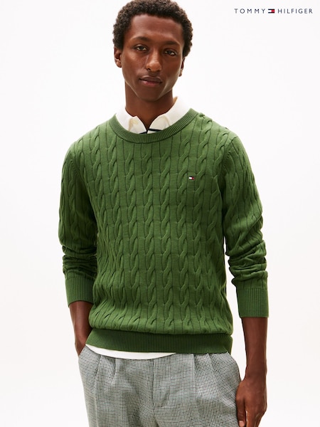 Tommy Hilfiger Green Flag Embroidery Cable Knit Jumper