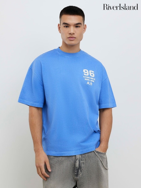 River Island Blue Oversized Nagoya 96 T-Shirt