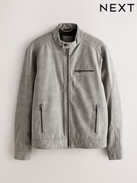 Grey Faux Nubuck Racer Jacket