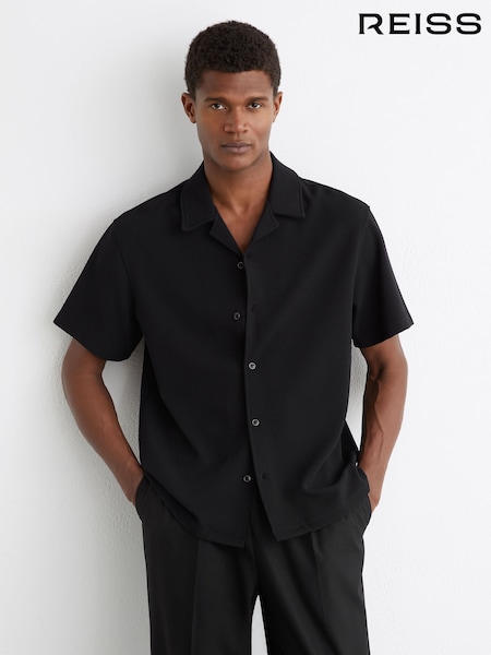 Reiss Black Cedric Textured Cuban-Collar Shirt