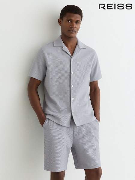 Reiss Soft Blue Felipe Textured Jacquard Cuban-Collar Shirt