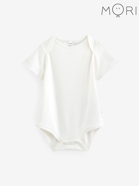 MORI White Short Sleeve Envelope Neckline Bodysuit