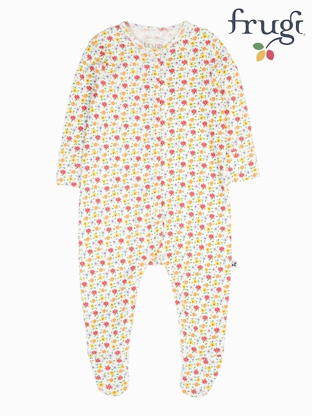 Frugi Lovely Pointelle Babygrow White Sleepsuit